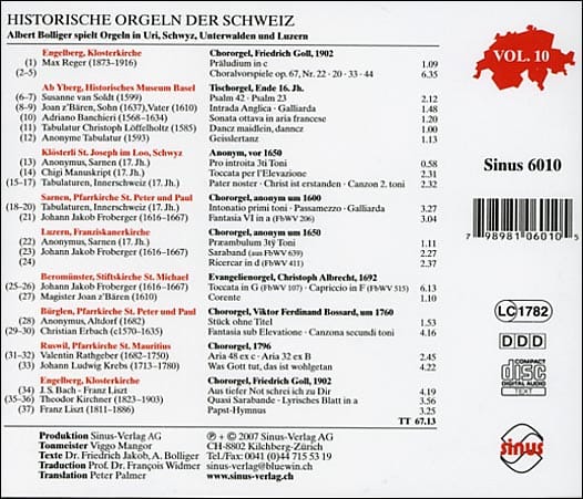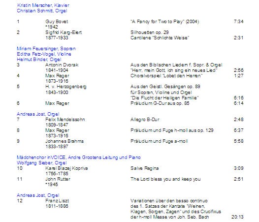- J.J. Froberger, J. Pachelbel, Ch. Erbach, S. Scheidt, G. Muffat, J.S. Bach