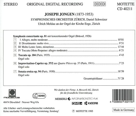 - Ulrich Meldau (Orgel), Symphonisches Orchester Zürich, Daniel Schweizer (Leitung)