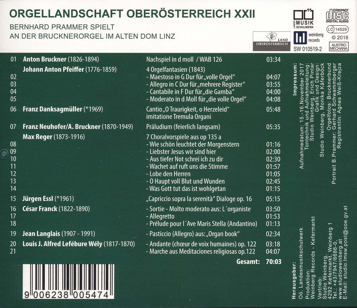 - A. Bruckner, J. A. Pfeiffer, F. Danksagmüller, F. K. Neuhofer, M. Reger, J. Essl, C. Franck, J. Langlais, L. A. Lefébure-Wély