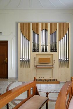Wendig, elegant und vielseitig im Klang ist unsere Kleinorgel, die wir speziell für Kapellen und Andachtsräume konzipiert haben. Dank ihres fahrbaren Unterbaus ist sie nicht an einen festen Standort gebunden.
