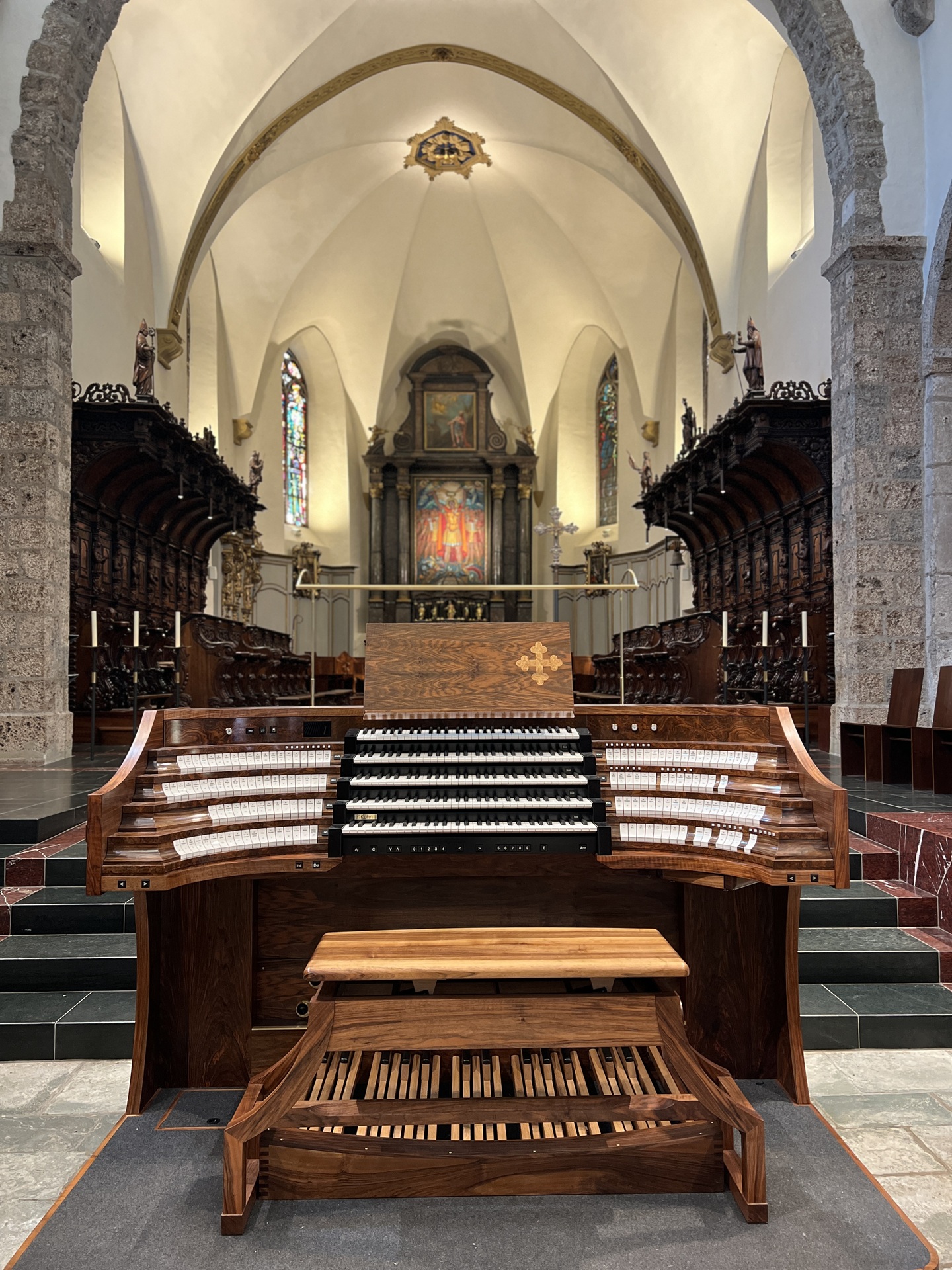 Das Ergebnis dieses herausfordernden Projektes ist faszinierend - das neue Solowerk gliedert sich wunderbar in die bestehende Disposition ein und ergänzt diese durch neue Klangfarben, vom 32 ' über neue Zungenregister bis hin zu den Aliquotregistern (Tièrce, Quinte, Septième, Neuvième). Mit den technischen Möglichkeiten der neuen Spieltische sowie der modernen Setzeranlage, ist der Spagat zwischen den Welten eindrücklich gelungen!