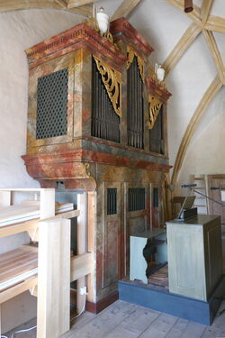 A special feature of the instrument that must be mentioned is the clearly recognizable mean-tone temperament after the restoration of the front pipes. Obviously, this was retained when the organ was rebuilt in the 19th century - much to our delight, as the special charm of the old pipes could thus be clearly emphasized.