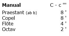L'instrument, propriété de Monsieur Andreas Juon de Götighofen, a pu être attribué au facteur d'orgues Hans Haueter grâce à des initiales figurant sous la chape de façade («HHO 1800»). En 1972 déjà, nous avions eu l'occasion de restaurer un orgue de ce facteur, orgue qui se trouve dans la chapelle de la clinique de Pfäffers.